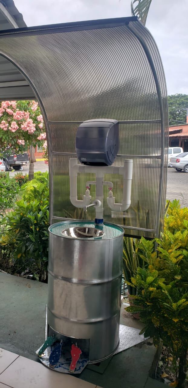 Se trata de Allan Jiménez, quien es el dueño de la popular soda Marea Alta de Jacó y quien diseñó económicos aparatos mecánicos para dispensar alcohol, agua y jabón líquido.