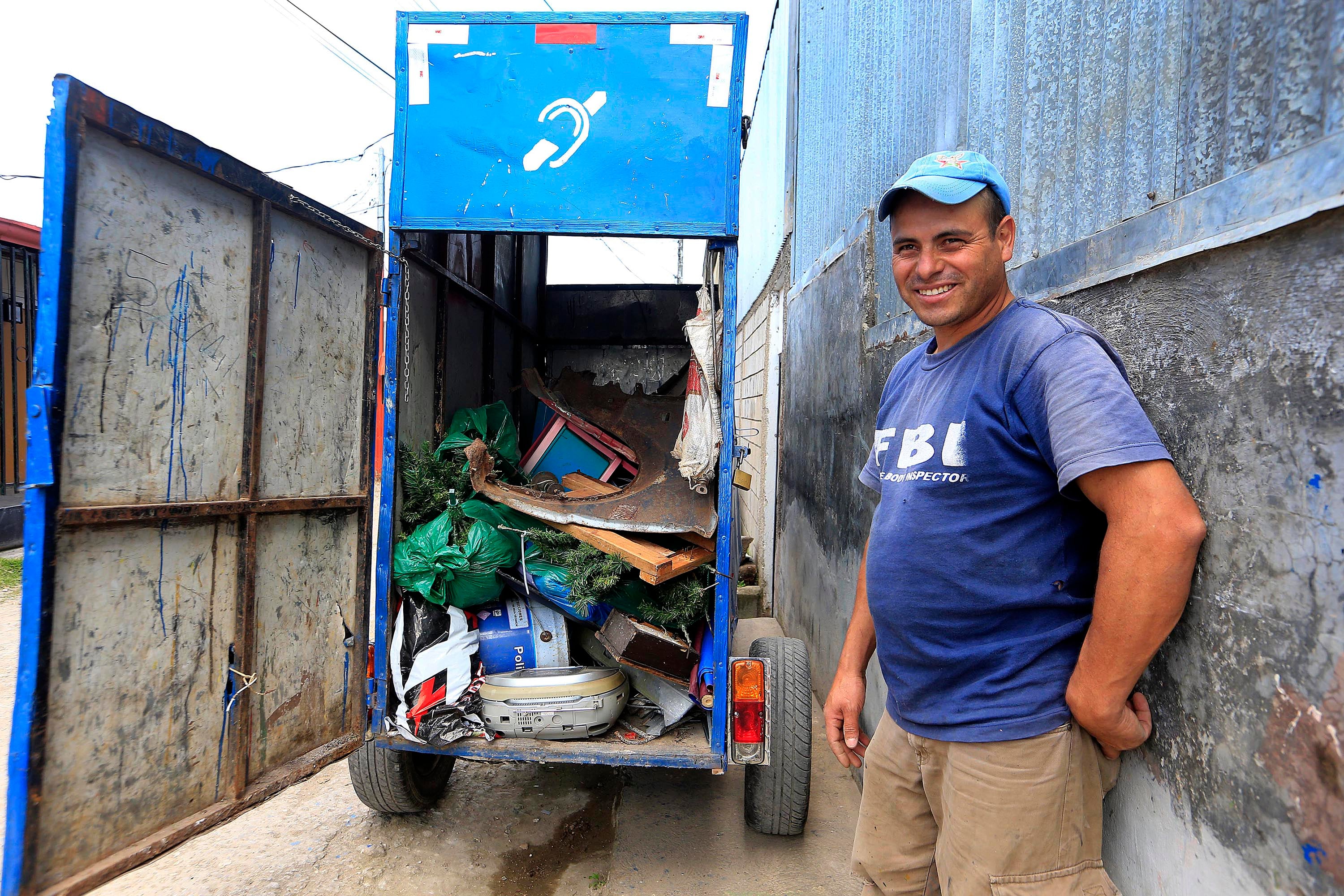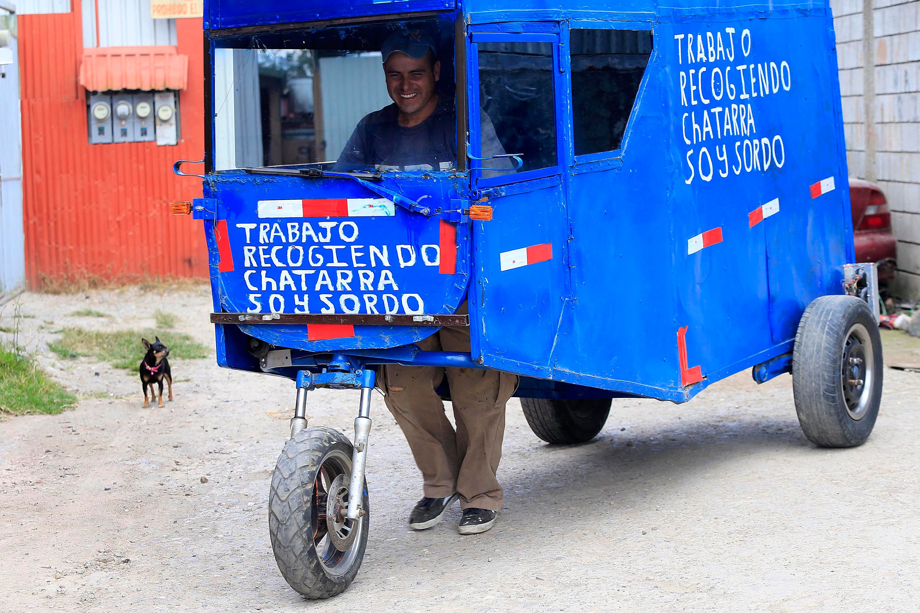 Este brumoso de 38 años es sordo, pero eso no lo arruga, es un pulseador de los bravos y anda por San Isidro de El Tejar de El Guarco, Guadalupe, Agua Caliente, San Rafael de Oreamuno y por los barrios cercanos del centro de la Vieja Metrópoli en busca de chatarra, que es con lo que se gana la platica para mantener a su esposa y sus dos hijas.