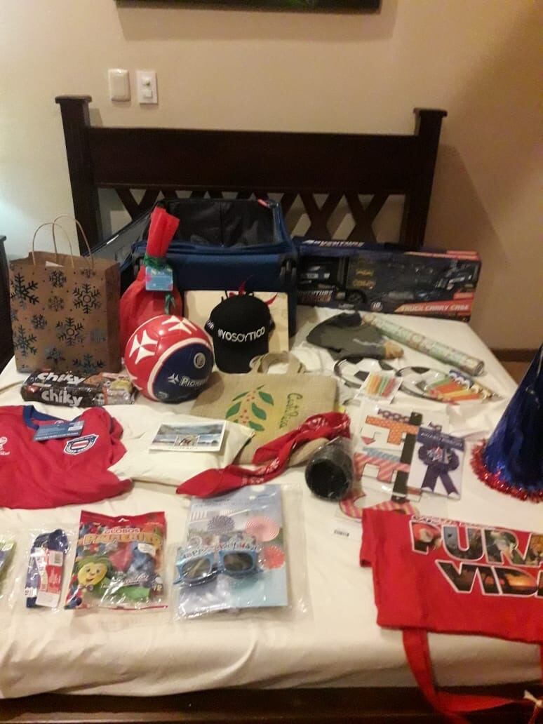 “La maleta venía con muchos detallitos alusivos a Costa Rica, pero también traía otras cosas que son propias de su edad para que las disfrute en esta época. Le trajimos chonetes, pañuelos típicos, tarjetas postales con imágenes del país, una bola, una camisa de la Sele y además le enviaron pijamas personalizadas, ropa y juguetes”, agregó.