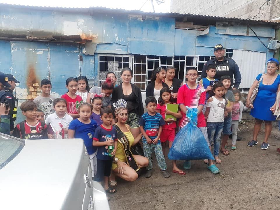 Policías le ayudaron a la reina de belleza para hacer las entregas.