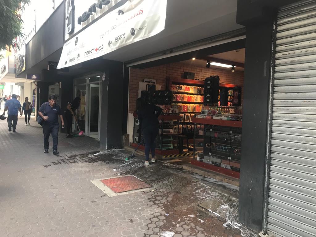 “Esto es de todos los días, salir y lavar con agua, cloro y desinfectante y luego pasar la escoba”, reconoció Mercedes Vargas, a quien precisamente vimos en esa faena en el salón de belleza Avenida Uno, ubicado 25 metros sur del restaurante El Tostador, en plena avenida Central.