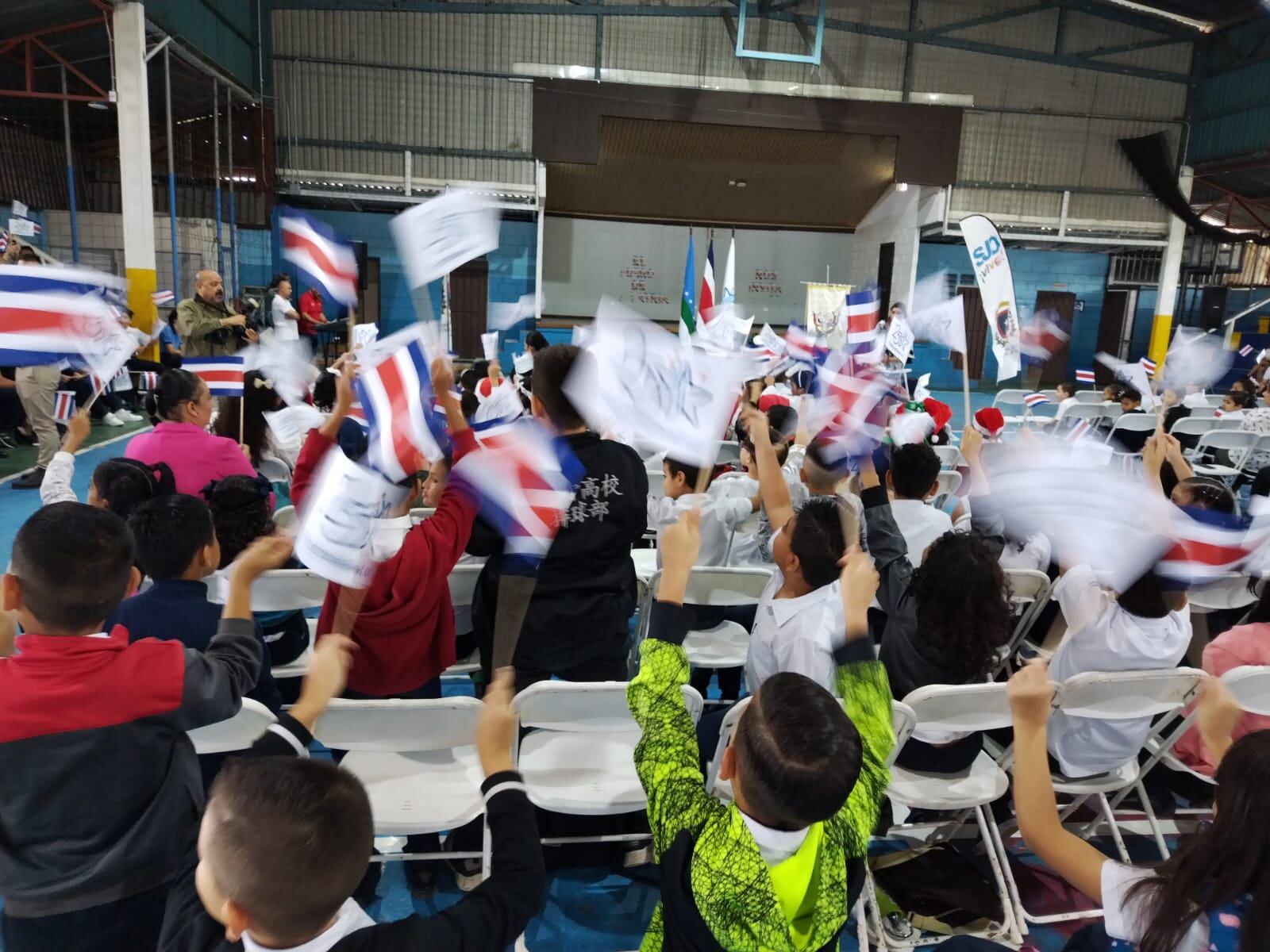Música, banderas de Costa Rica y del Festival de la Luz, del cual ella será la mariscal este sábado 17 de diciembre, se movían con tremenda emoción cuando ella llegó para hablar y motivar a los estudiantes con el objetivo de que tengan bien claro que todos los sueños se hacen realidad sin importar la procedencia.