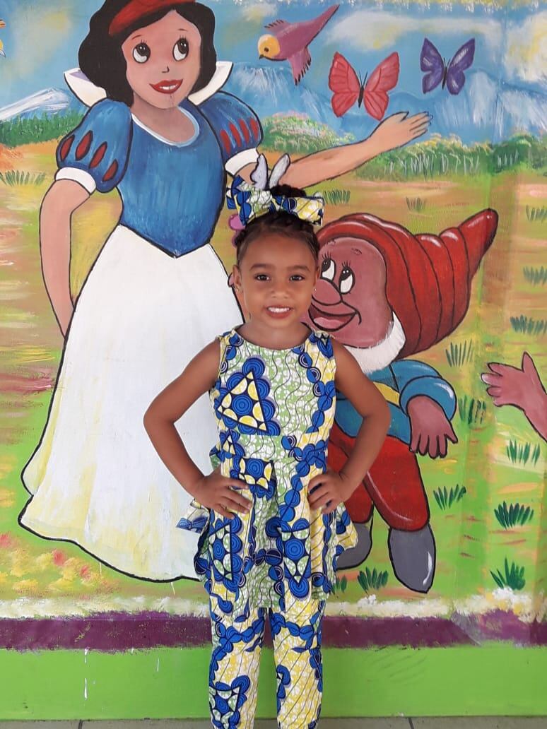 Dijo que el hermoso traje que usó se lo hizo la costurera de Cahuita Katerine Vindas. También le hizo el que utilizó en el Festival Estudiantil de Arte.