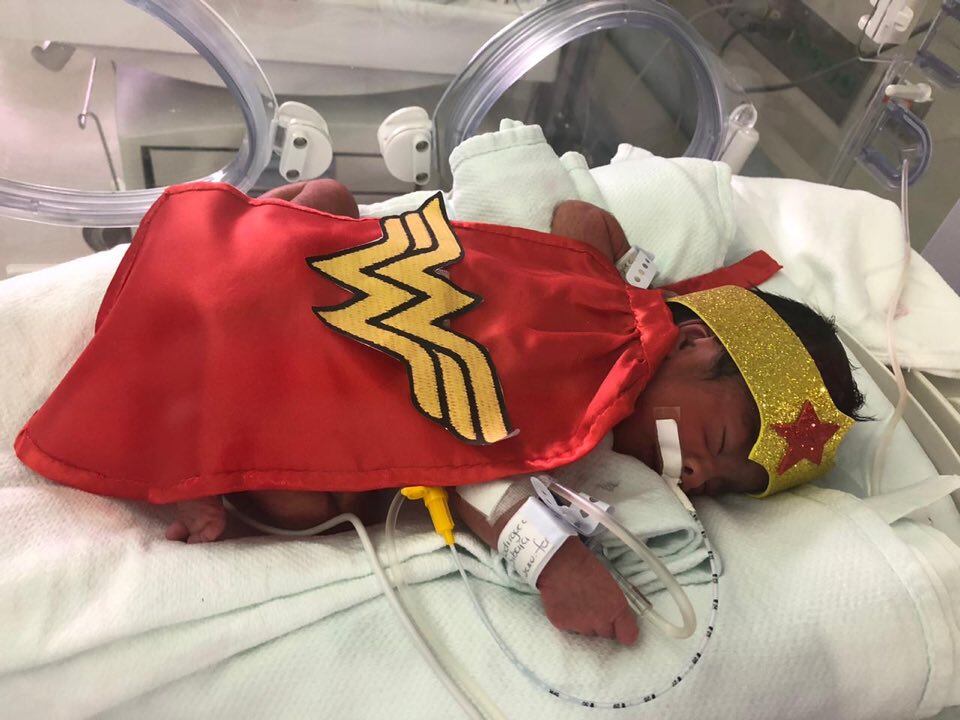 Desde hace dos meses y 20 días, Natalia permanece internada en la Unidad de Neonatología de ese hospital y este viernes la vistieron con un tutú de bailarina para que se apuntara a la celebración. Otros de sus amiguitos prematuros fueron vestidos con trajes de superhéroes, esto en el hospital México.