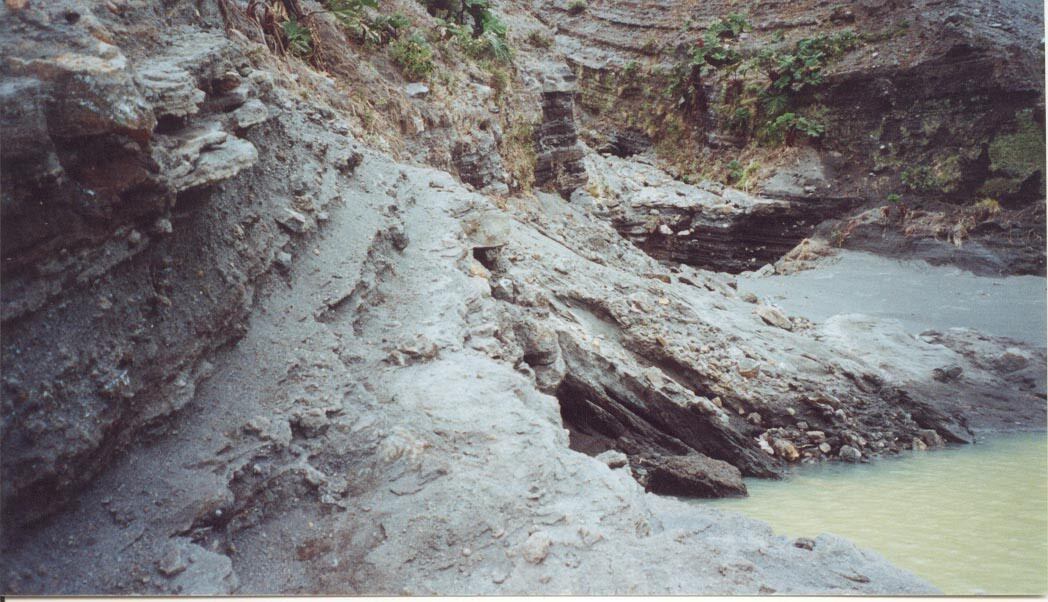 “El primer colapso se encuentra cerca del límite entre el cráter principal y el cráter Diego de la Haya. Áreas del borde del cráter de hasta veinte metros de ancho colapsaron en los dos sectores. Miles de metros cúbicos de material cayeron a la laguna en donde se pueden observar formas similares a abanicos que corresponden a la entrada del material colapsado a la laguna”, dice el informe, firmado por Eliécer Duarte y Erick Fernández.