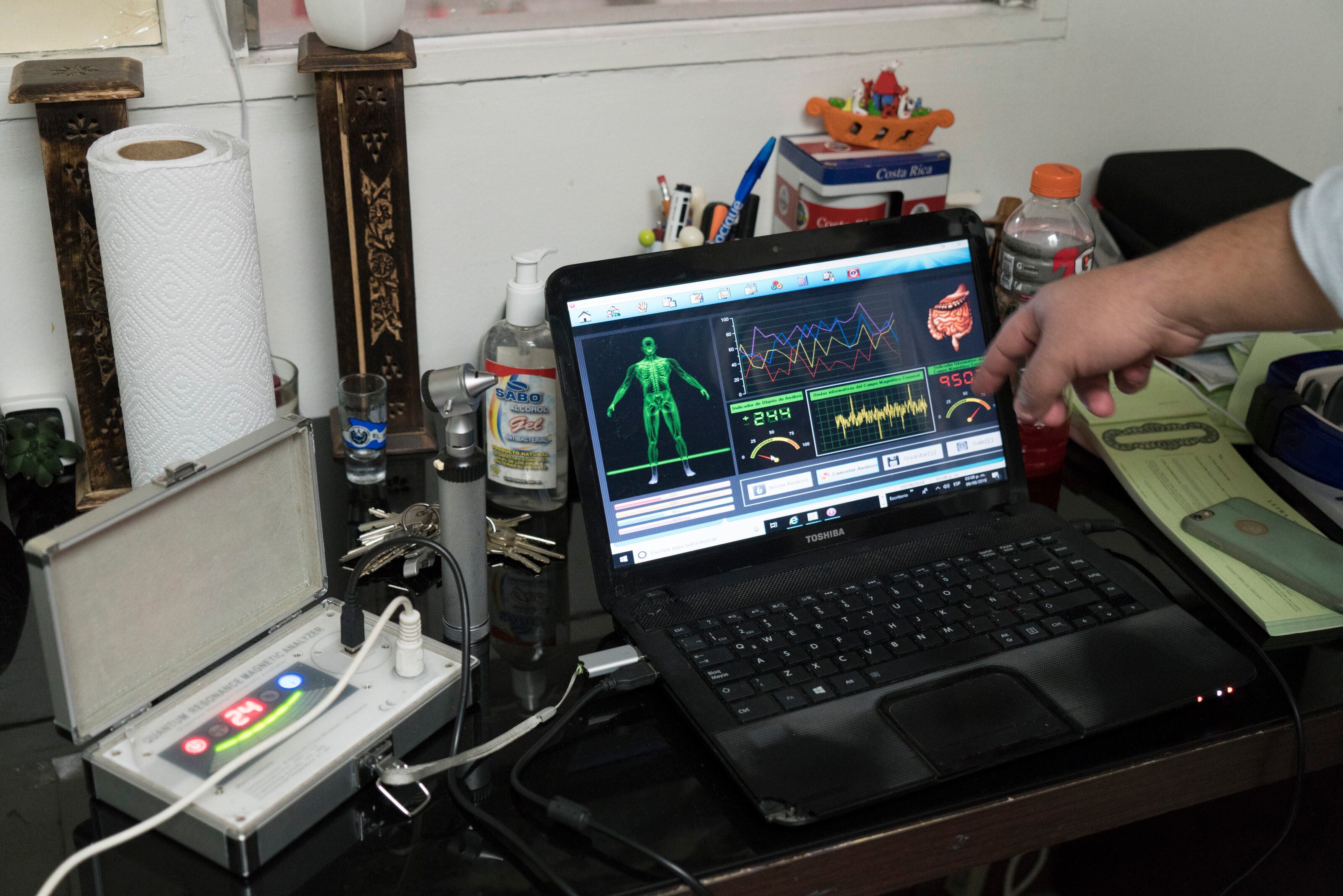 Ese aparato es una especie de computadora que se conecta a otra. Escanea la carga molecular del cuerpo y tarda como un minuto y medio para dar los resultados.