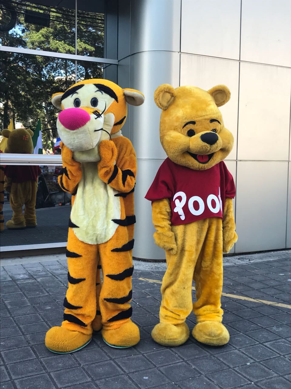Hasta personajes de Disney para tomarse fotos había a lo largo de la acera del frente, así como venta de comidas.