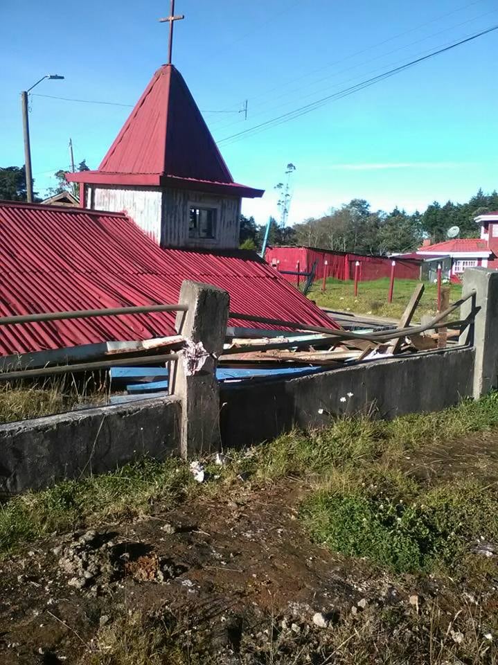 Vecinos de la comunidad explicaron que la asociación de desarrollo quería demoler el templo, pero que el terreno le pertenece a Temporalidades de La Iglesia Católica. Junto al templo está la escuela, que usaba la iglesia como bodega.