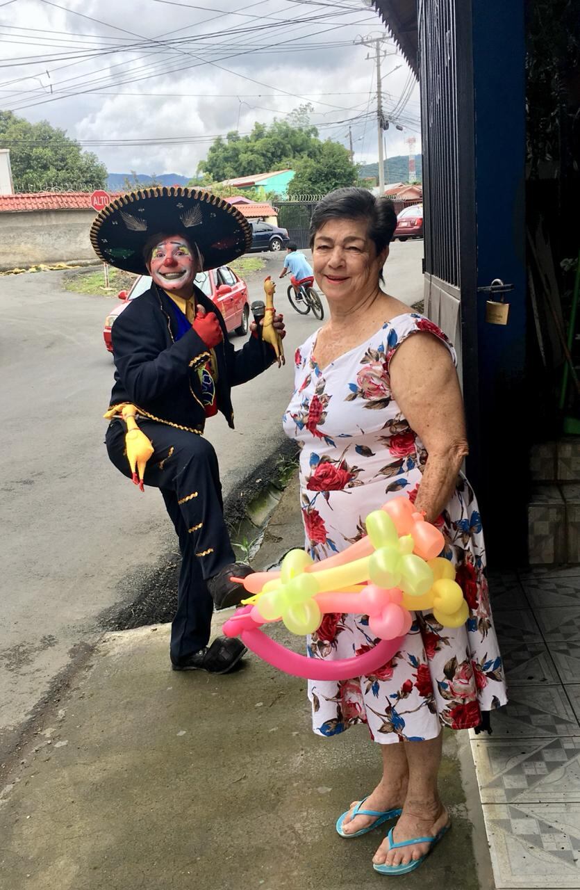 Esto gracias a la sorpresa que le tenía preparada su hija Lucrecia Fallas, quien contrató al payaso Puchito, para que le llevara serenata a su casa en San Juan de Dios de Desamparados.