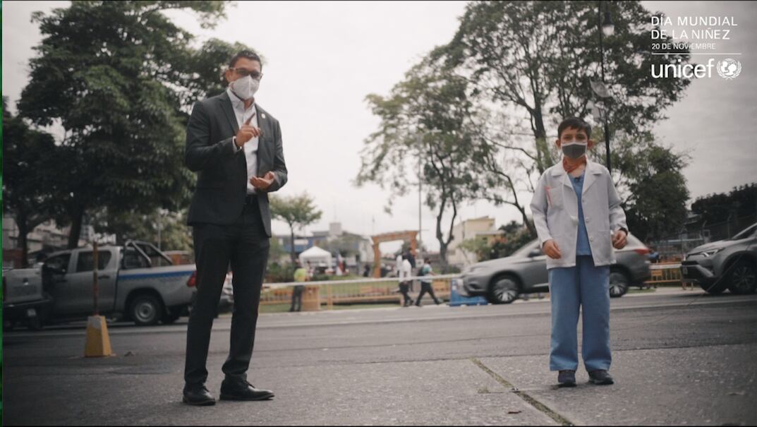 Y el video, en el que sale con un traje médico, fue dado a conocer este viernes 20 de noviembre en el marco del Día Mundial de la Niñez y en este se observa parte de la conversación que sostuvieron ambos ministros.