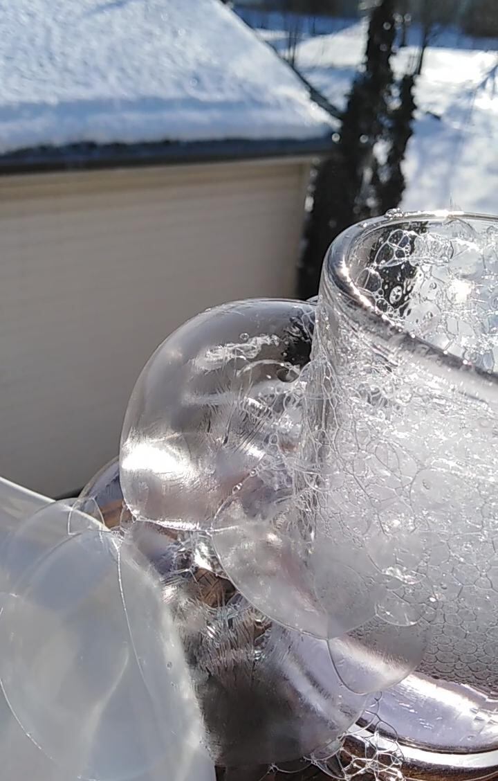 Carolina es artista plástica y nos contó que el miércoles recién pasado salió con el pelo mojado a hacer un mandado y en cuestión de dos minutos se le congeló. Esto le despertó la curiosidad, así que un día después junto a su hija Maya Valverde, de 7 años, hizo varios experimentos en el patio de la casa.
