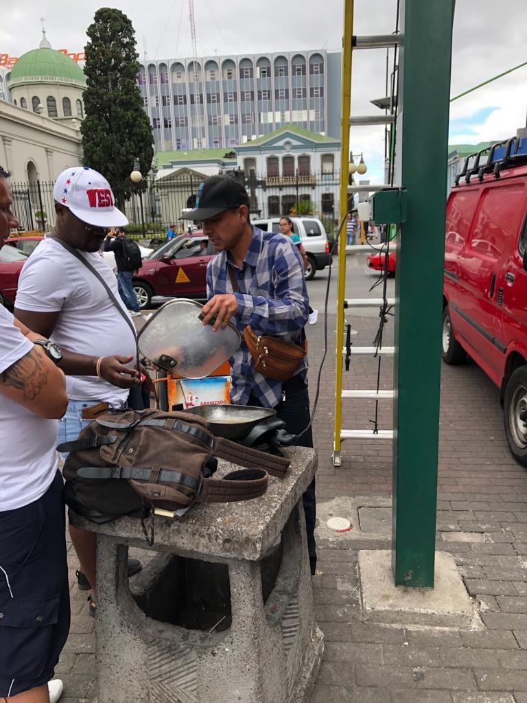 Un vivazo agarró los enchufes públicos, que son para que la gente cargue los celulares, para conectar un sartén eléctrico y hacer pupusas para vender.