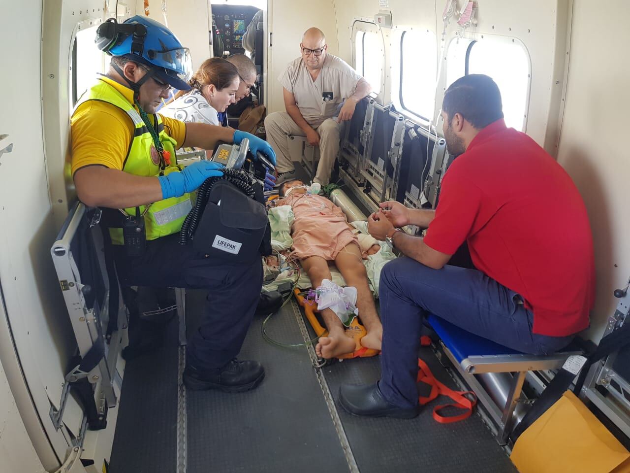 El joven viajó bien cuidado, porque iba un médico especialista en emergencias, dos enfermeras y un especialista en terapia respiratoria, todos del Calderón Guardia. Ese traslado se hizo en menos de dos horas. Explica el doctor Umaña que por tierra habría sido más el tiempo y eso habría puesto en real peligro la vida del paciente.