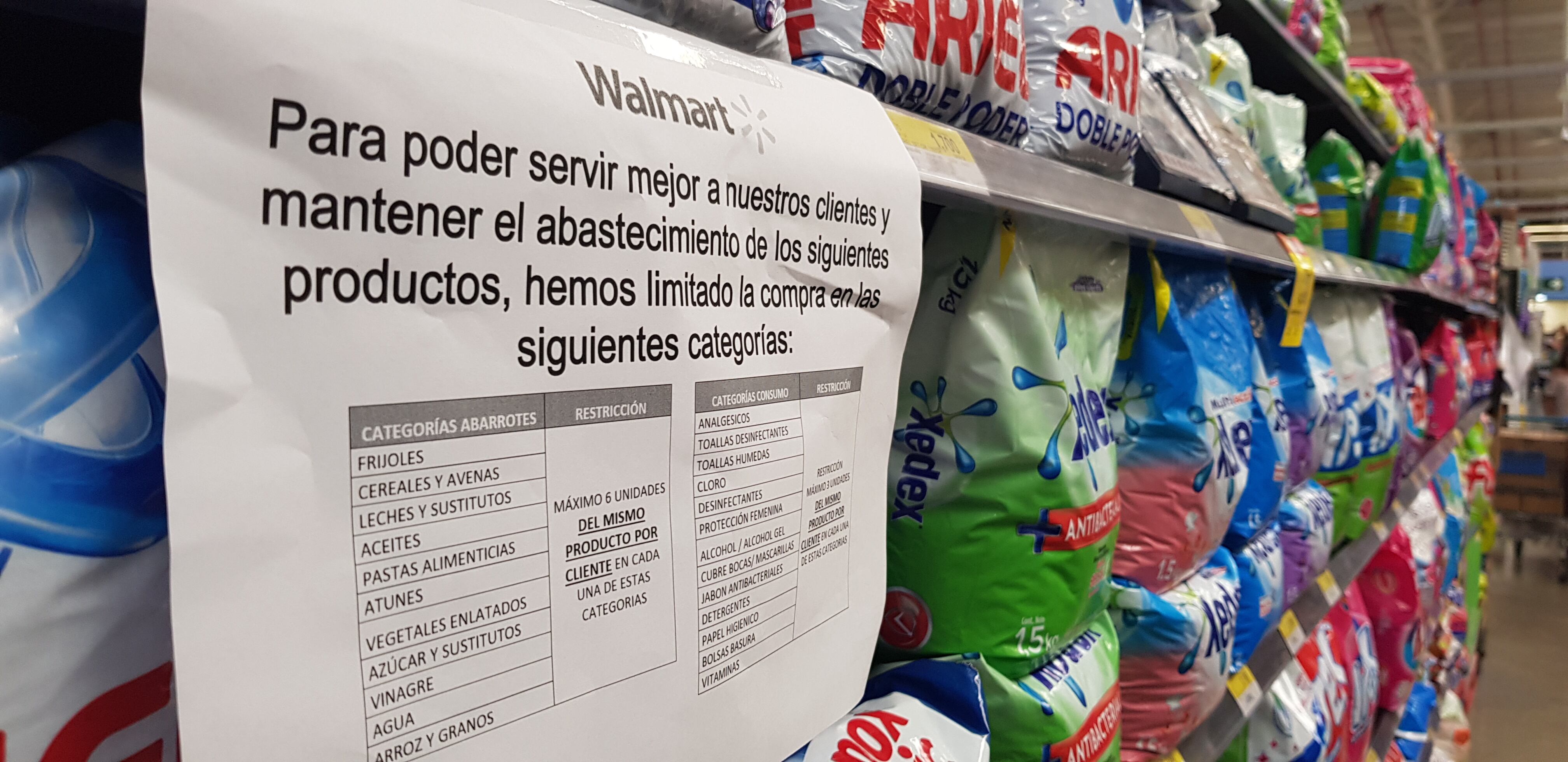 En este escenario, la cadena de supermercados Walmart, con 270 locales en todo el país, tomó la decisión de limitar a un máximo de seis unidades la compra de algunos productos de la alimentación básica.