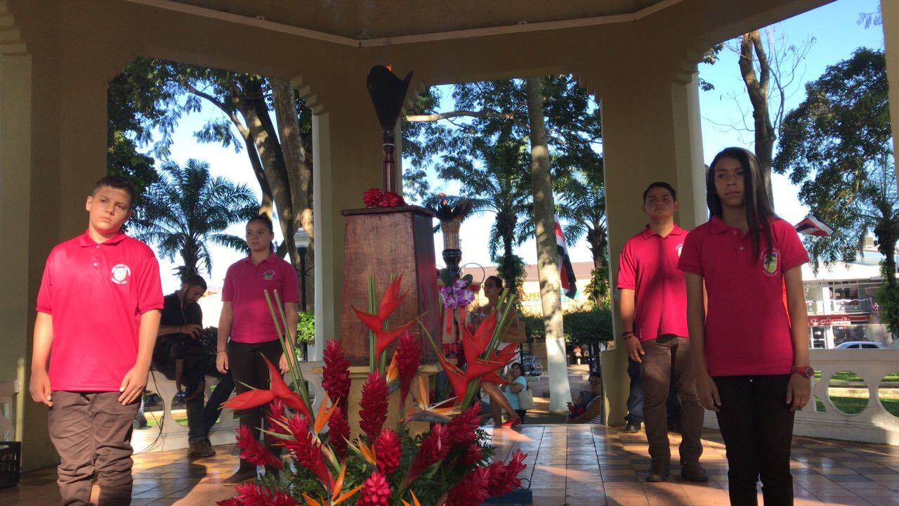 Omar Agüero, director regional del MEP en Puntarenas, confirmó que por órdenes superiores la antorcha se mantiene en el parque Pérez de Esparza, custodiada por estudiantes.