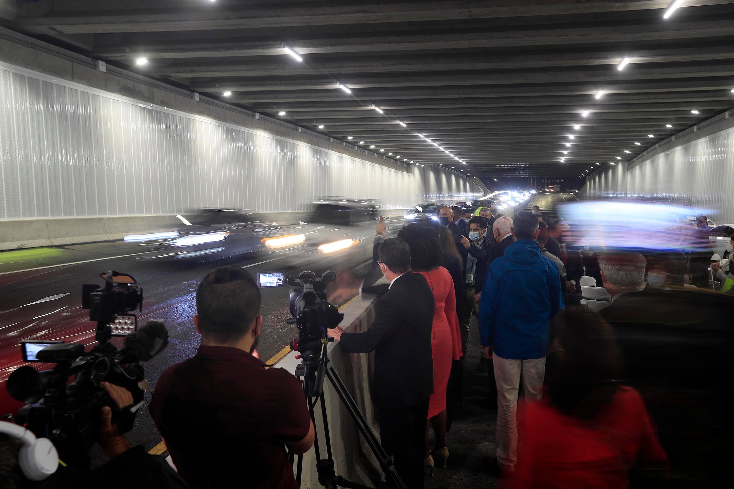 El paso a desnivel tiene ahora cuatro carriles, dos por sentido, que conectan con un puente elevado de 340 metros, los cuales permiten el tránsito fluido entre las rotondas y pasos a desniveles de las Garantías Sociales y del Bicentenario.