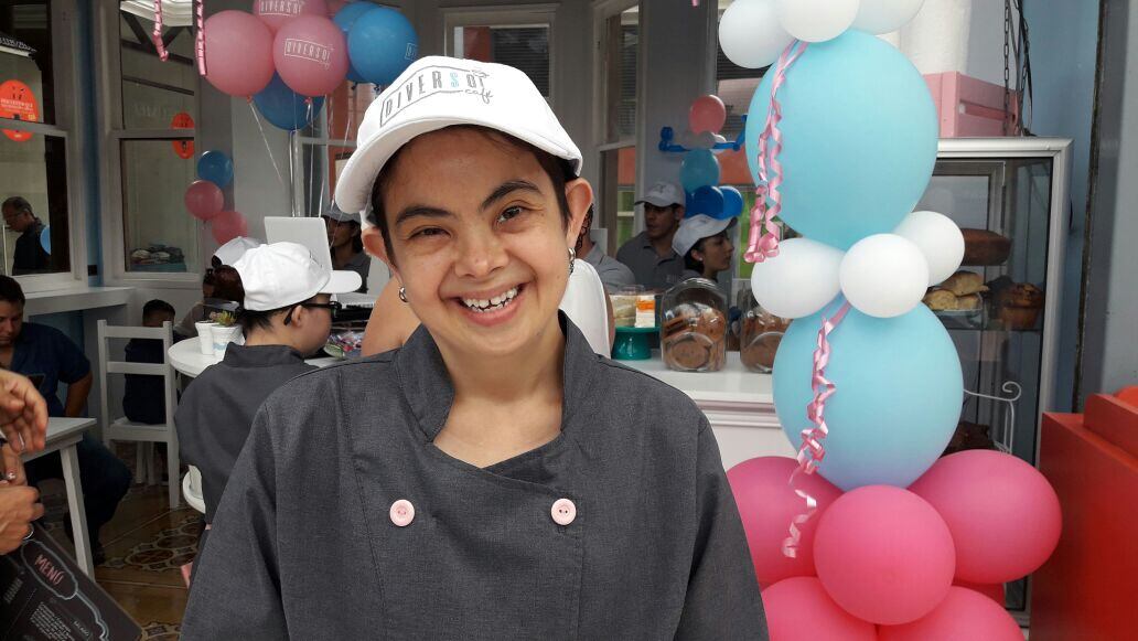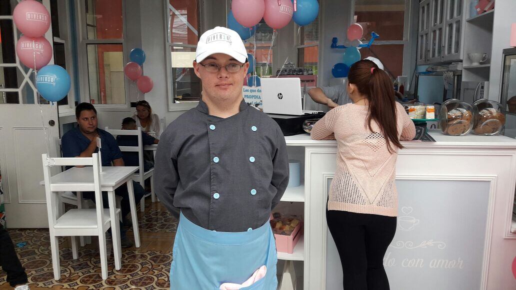 Resulta que don Geovanny se enteró mediante redes sociales que este sábado se iba a inaugurar una cafetería llamada Diverso Café, en la que todas las personas que atienden tienen Síndrome de Down y no lo pensó dos veces en ir.