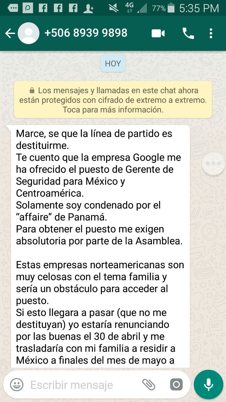 “Es penoso tener que hacer públicas las palabras del señor Gamboa referido sobre lo que señala el compañero Redondo, donde me pide que por favor no me presente y que algunos de los diputados de la Asamblea con los que había conversado se opondrían para hacer su destitución, señala además que él quiere renunciar”, añadió.