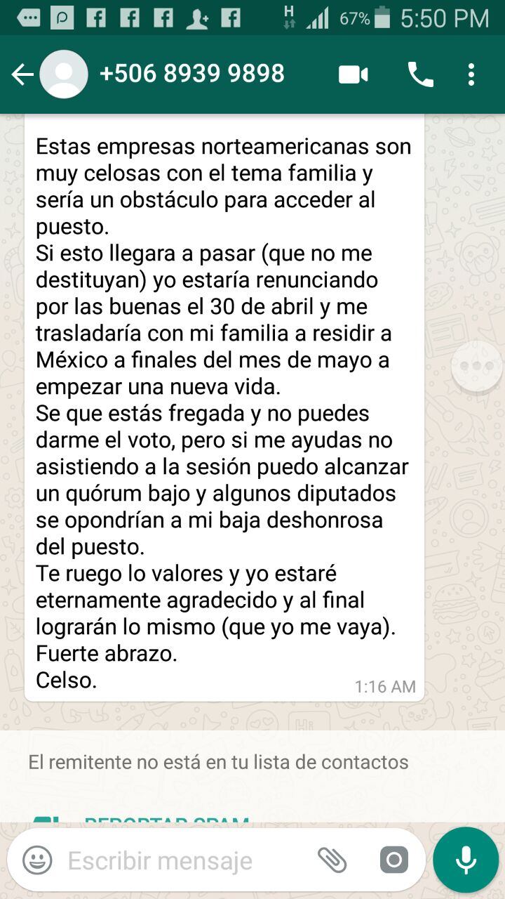 Antes de la votación, salió a la luz otra acusación hacia el ahora exmagistrado. Los diputados del Partido Acción Ciudadana (PAC) Marco Vinicio Redondo y Marcela Guerrero denunciaron que Gamboa los contactó para que se ausentaran de la sesión de este martes con el fin de que no se realizará la votación sobre su destitución.