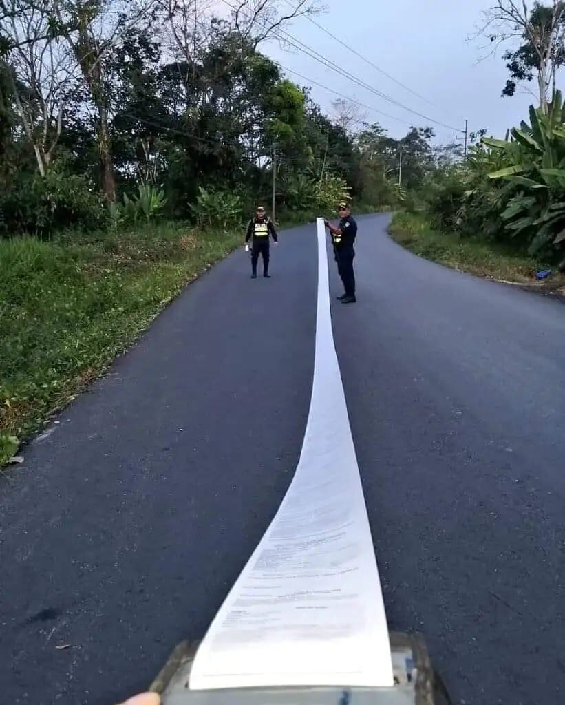 Cuando el tráfico empezó a imprimir el parte, los presentes se quedaron asombrados pues salió una tira larguísima, casi se acaba todo el rollo de papel. En total fueron casi siete metros de tira que el conductor tuvo que arrollar para irse a pie a su casa, pues necesita el documento por si se le ocurre apelar alguna falta.