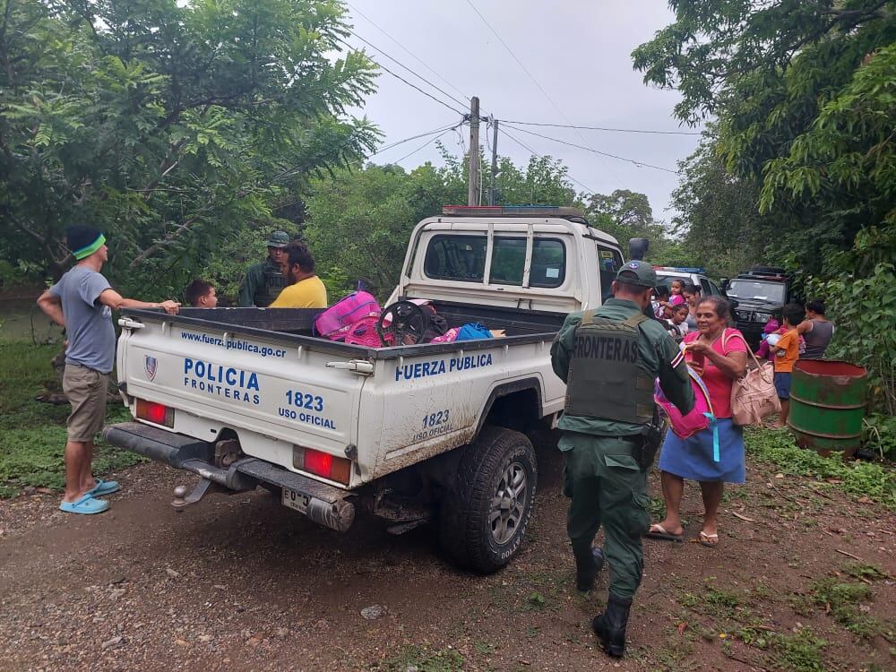 La Policía de Fronteras, el Servicio de Guardacostas y otros cuerpos de rescate hicieron evacuaciones de familias de Los Chiles, Cutris de San Carlos y Barra del Colorado mediante lanchas y hasta en los pick ups de la Policía.
