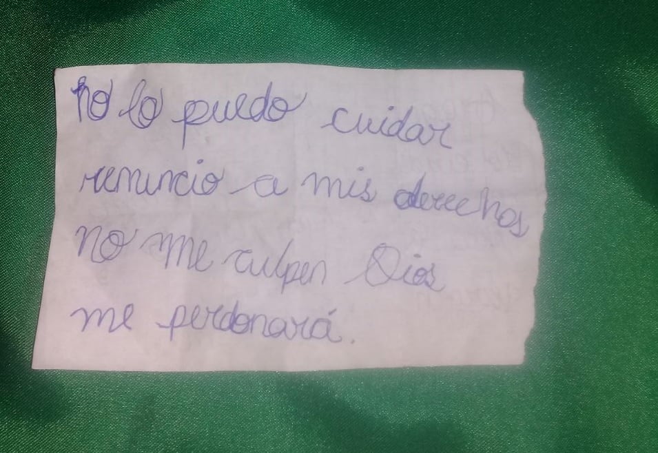 Al parecer, la niña estaba envuelta en unos paños y estaba a la par de unos jugueticos. Además había una nota que decía "no lo puedo cuidar".