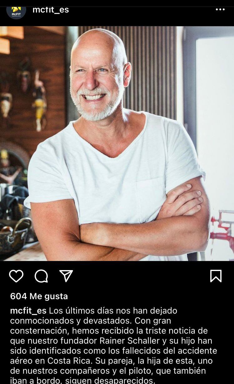 “Los últimos días nos han dejado conmocionados y devastados. Con gran consternación, hemos recibido la triste noticia de que nuestro fundador Rainer Schaller y su hijo han sido identificados como los fallecidos del accidente aéreo en Costa Rica”, publicaron en su cuenta de Instagram.