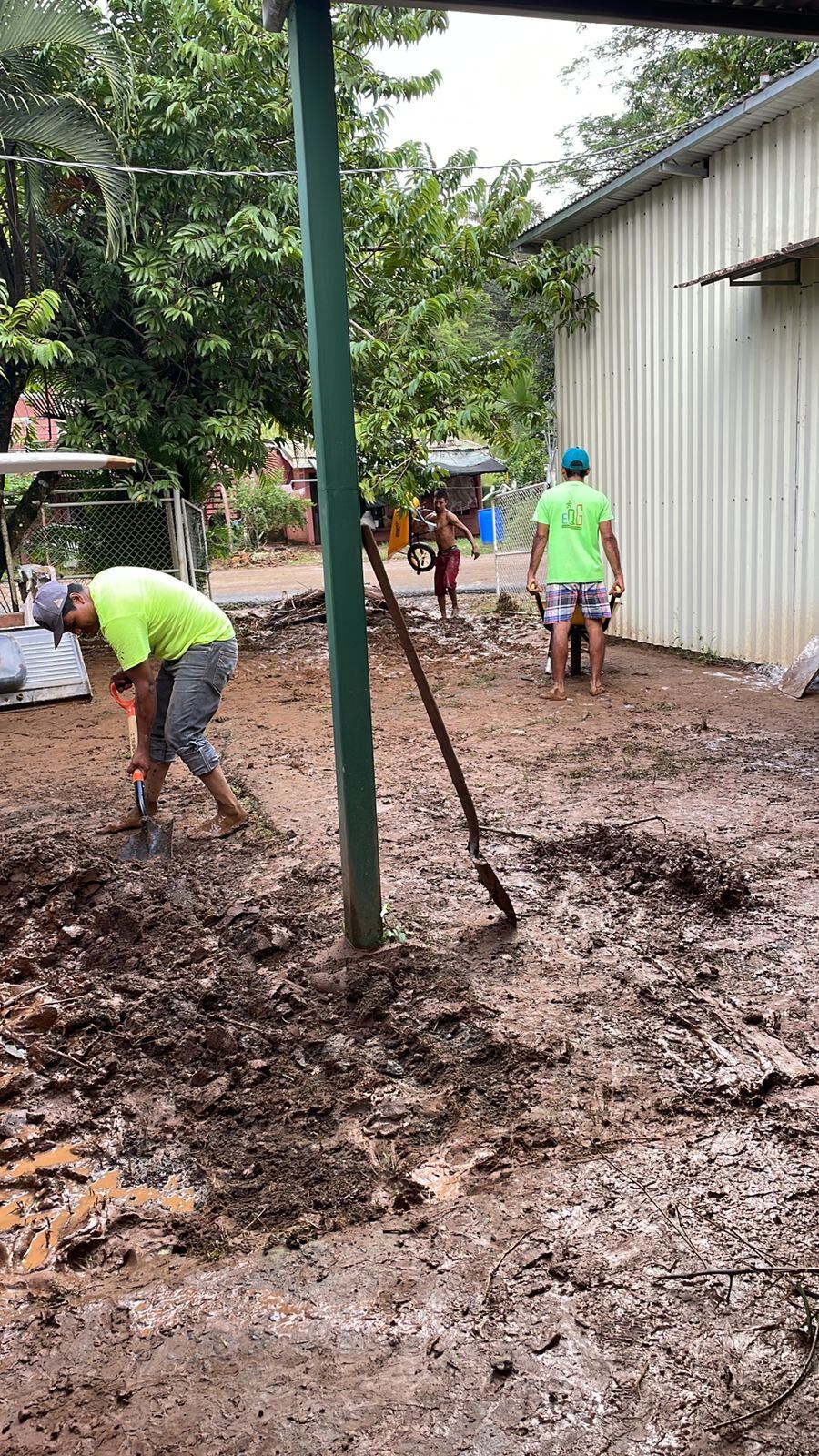 “Vinieron varias personas a ayudarme, hoy conocí el amor y la amistad, nunca me había sentido tan amado. Mi papá de 80 años vino desde Puerto Jiménez con su palita, varios niños a los que les hago tablas también vinieron para colaborarme, me han ayudado desde las 7:00 de la mañana y llevan horas conmigo, me siento afortunado”, dijo Villalobos.