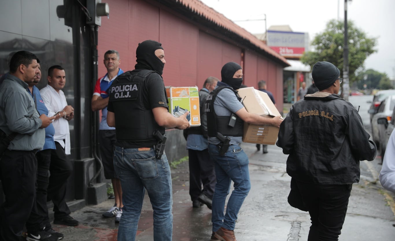En el local los oficiales también decomisaron unos ¢3 millones en efectivo y documentos de suma importancia, así como libretas y cámaras de video.