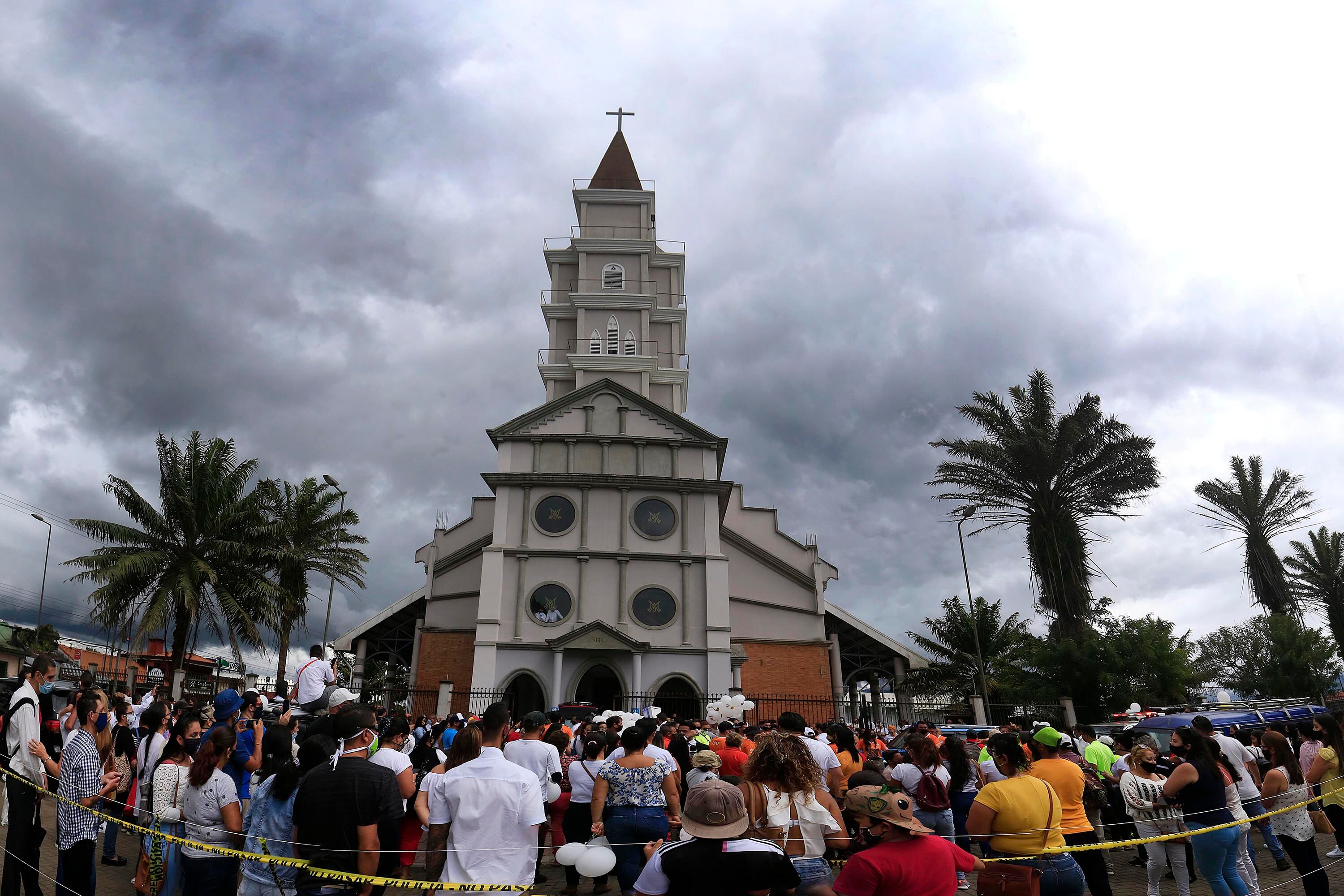 Irene Vargas, prima de la suegra de Allison, fue al funeral, pero no pudo entrar por la restricción de espacio en el templo debido a la pandemia, pero desde afuera escuchó la misa y despidió a la joven.
