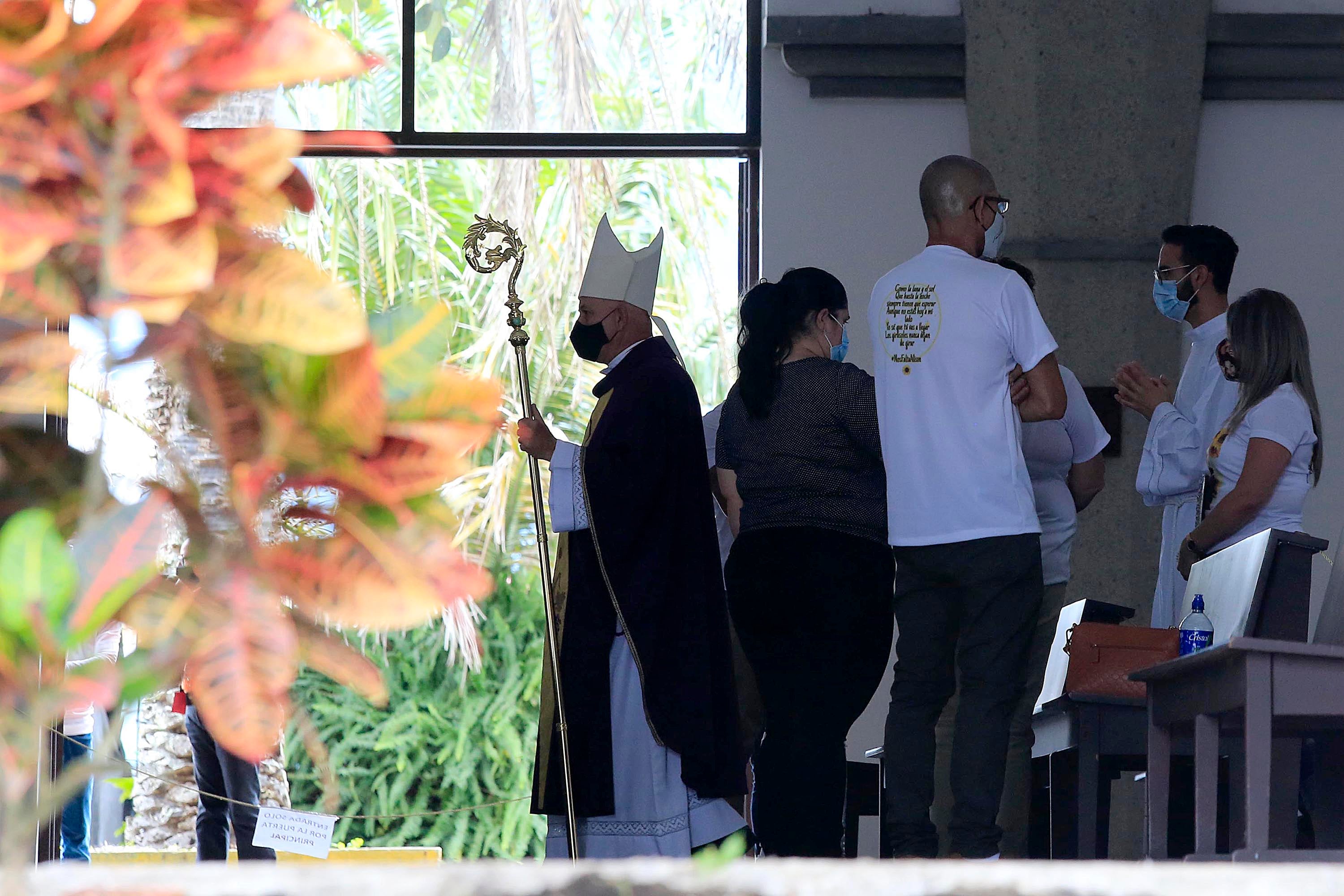 Al llegar al templo, fueron pocos los familiares que pudieron entrar por los protocolos sanitarios debido a la pandemia. Solo ingresaron quienes tenían un tiquete.