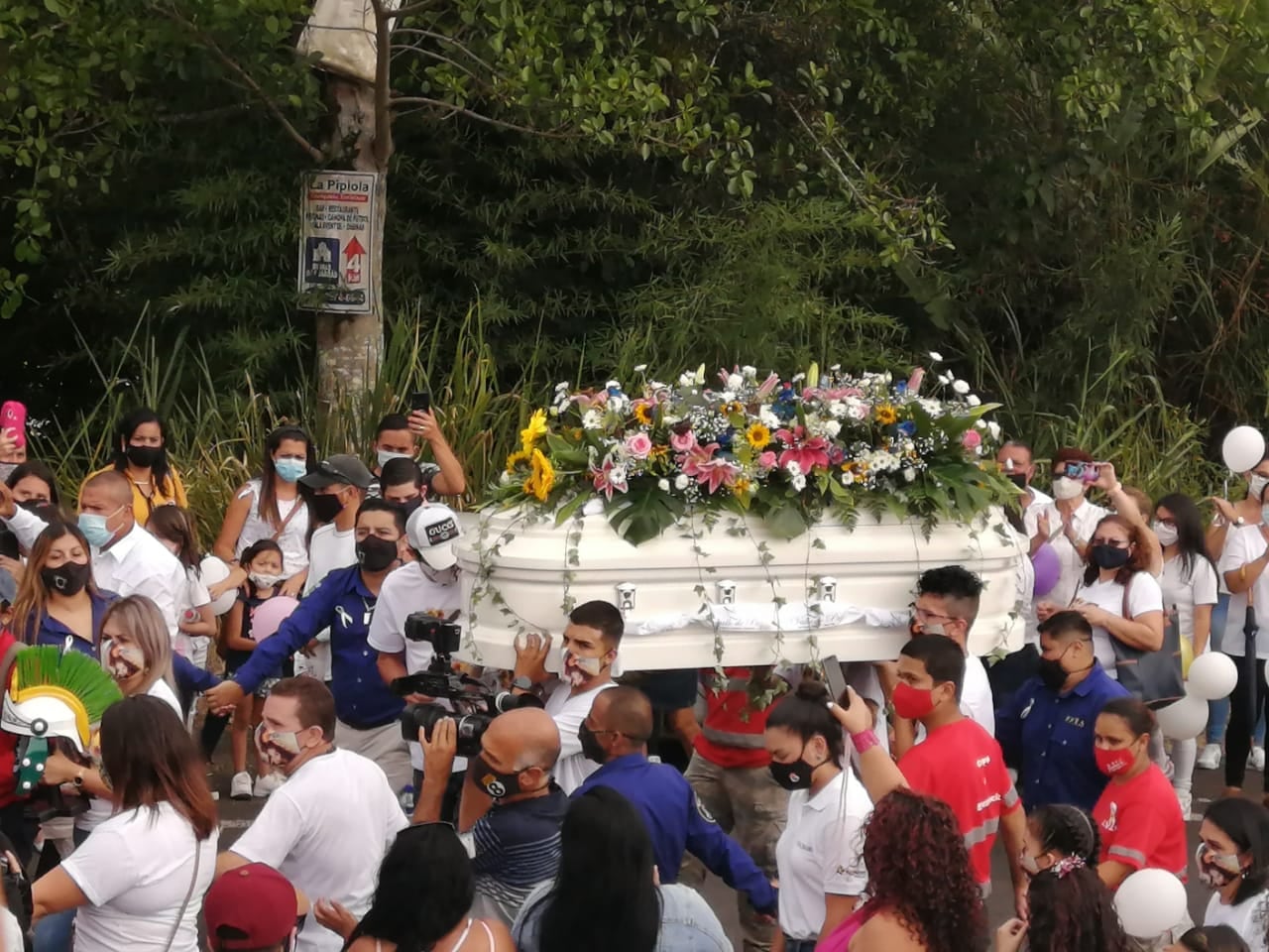Aunque a la salida del templo cayeron unas gotas que parecían indicar que el cielo también lloraba por la muerte de la joven, luego el cielo se aclaró y permitió que el entierro transcurriera en calma y bajo el sol.
