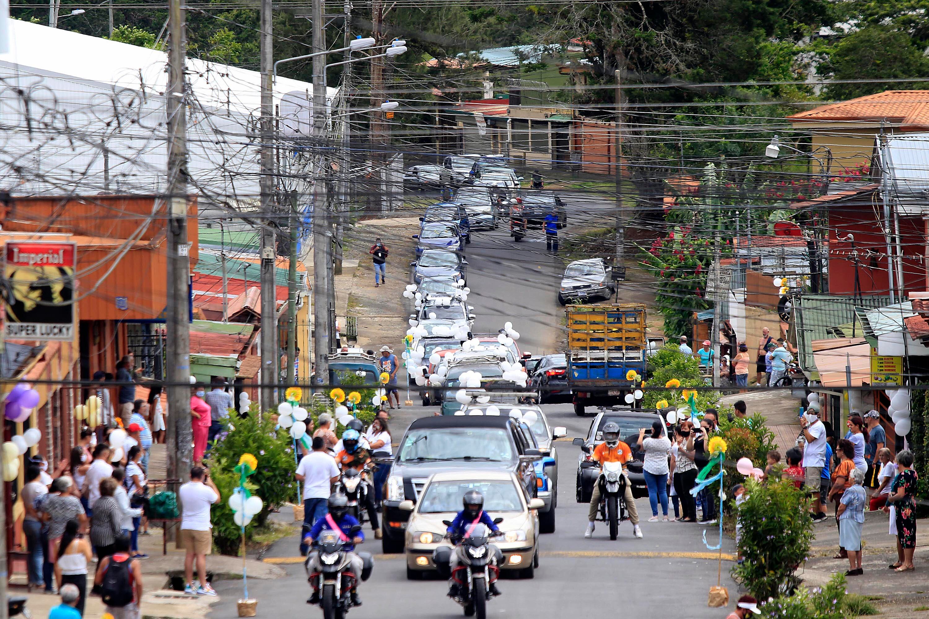Desde las 3 a.m. de este domingo, un grupo de allegados salió a adornar con bombas las calles de Ujarrás por las que luego pasaría una caravana llena de amor.