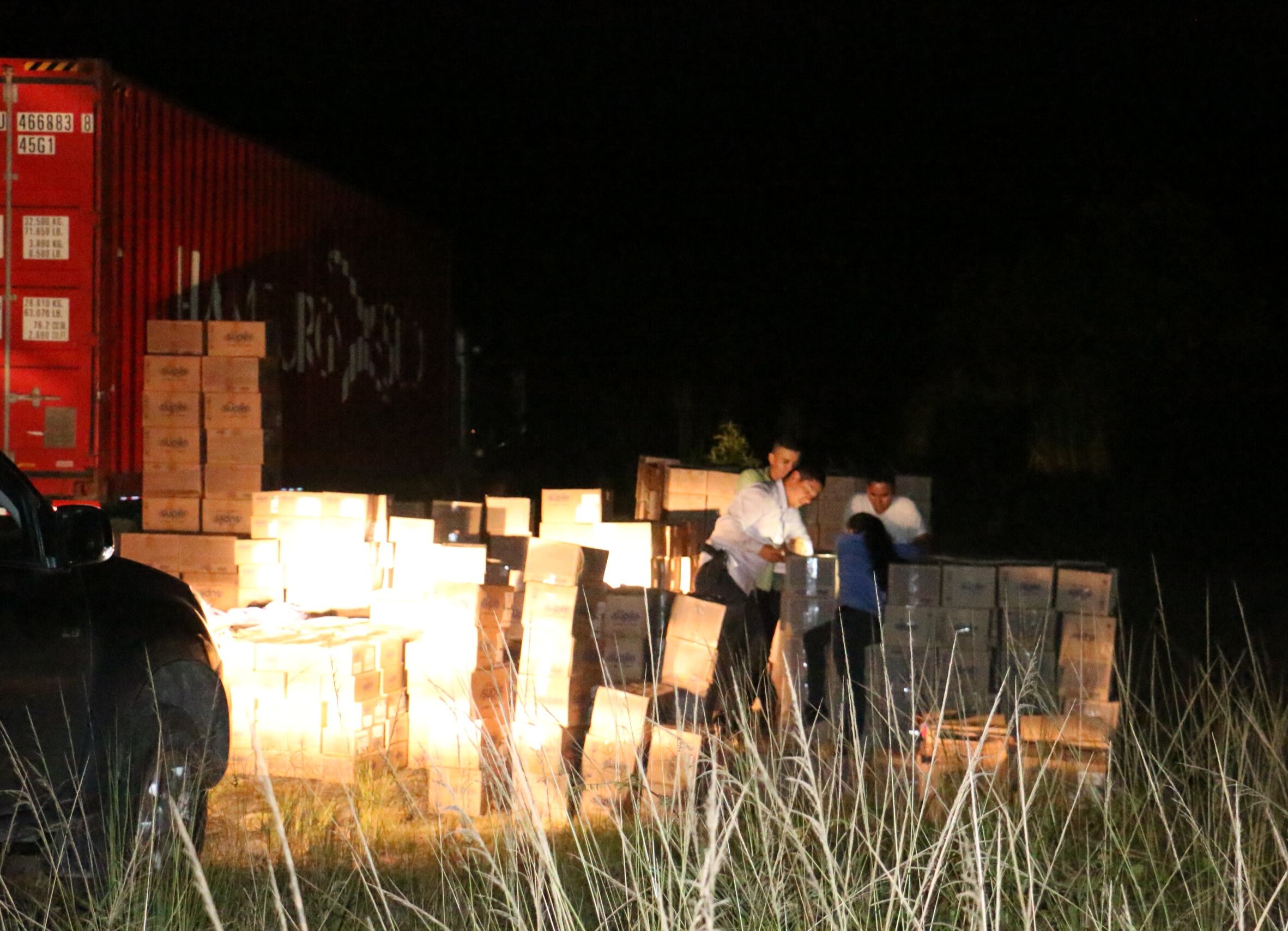 Dos de los integrantes del grupo criminal llevaron un camión hasta el lugar y empezaron a pasar los confites que iban empacados en cajas, cuando les cayeron los oficiales de la Fuerza Pública que andaban dándoles cacería.