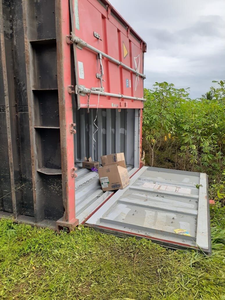 Los mielosos maleantes amenazaron al chofer, lo amarraron y se lo llevaron retenido en la cabina del vehículo pesado hasta calle La Trocha, en Guápiles, donde lo dejaron abandonado. Los hampones se llevaron el contenedor y a su paso por Guácimo se les volcó por lo que tuvieron que improvisar.