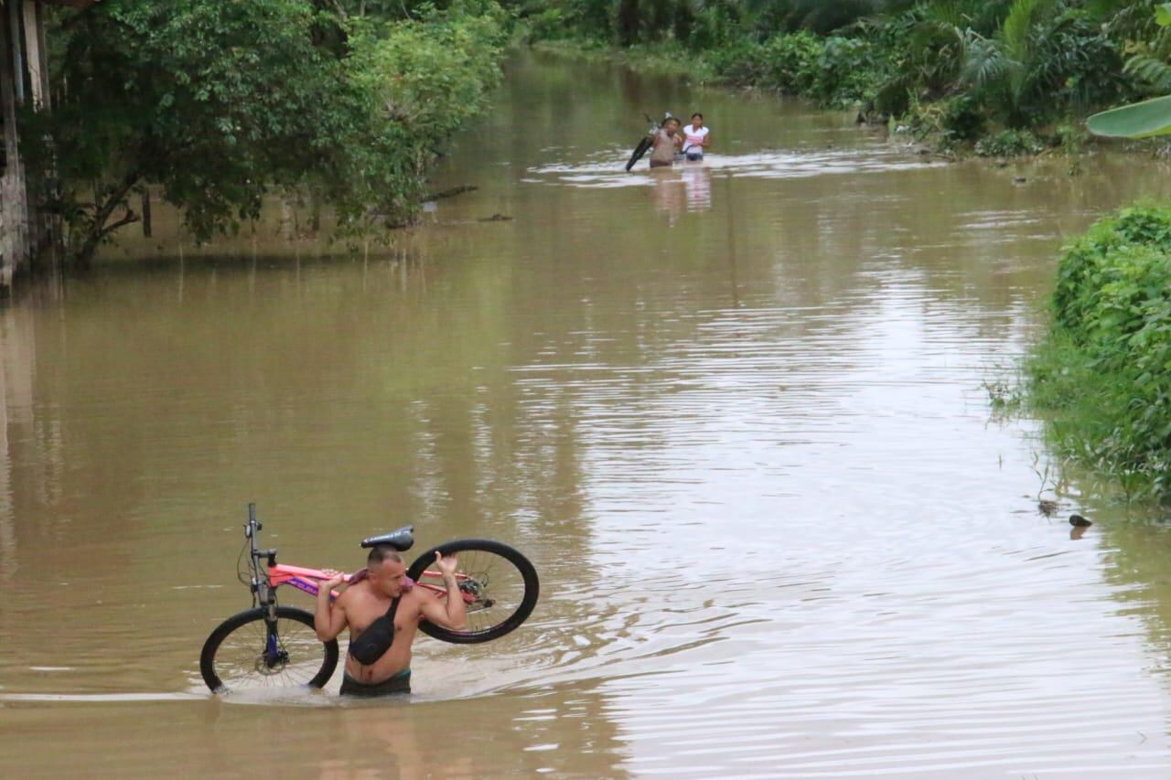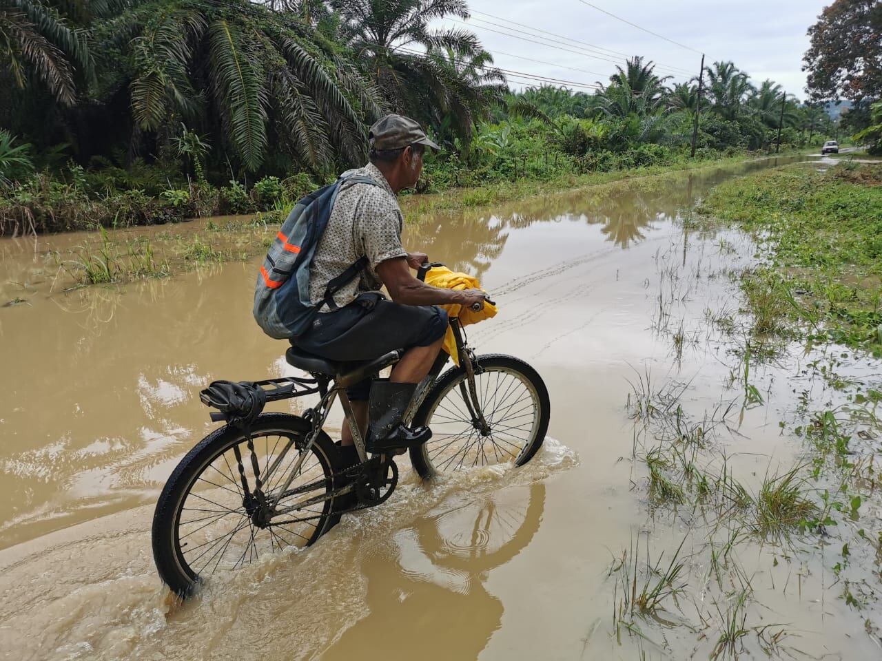 En esa misma comunidad nos encontramos a Edwin Amaya, quien iba caminando con su bicicleta al hombro porque el agua le llegaba a la cadera, él nos contó que salió a ver cómo estaba la comunidad porque toda la tarde y noche del martes, así como la madrugada del miércoles, llovió con mucha fuerza.