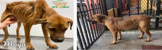 “Un señor me tenía encadenada con varios candados y me estaba muriendo de hambre, al punto que la gente me veía con lástima porque mi piel estaba pegada a las costillas. Yo me sentía muy débil, era puro huesito, solo estaba esperando que la pelona me llevara, pero unos vecinos de buen corazón llamaron a unos rescatistas de la Fundación Tierra de Animales y con ayuda de Senasa me salvaron la vida al sacarme de esa casa en Poasito de Alajuela”, contó Maya.