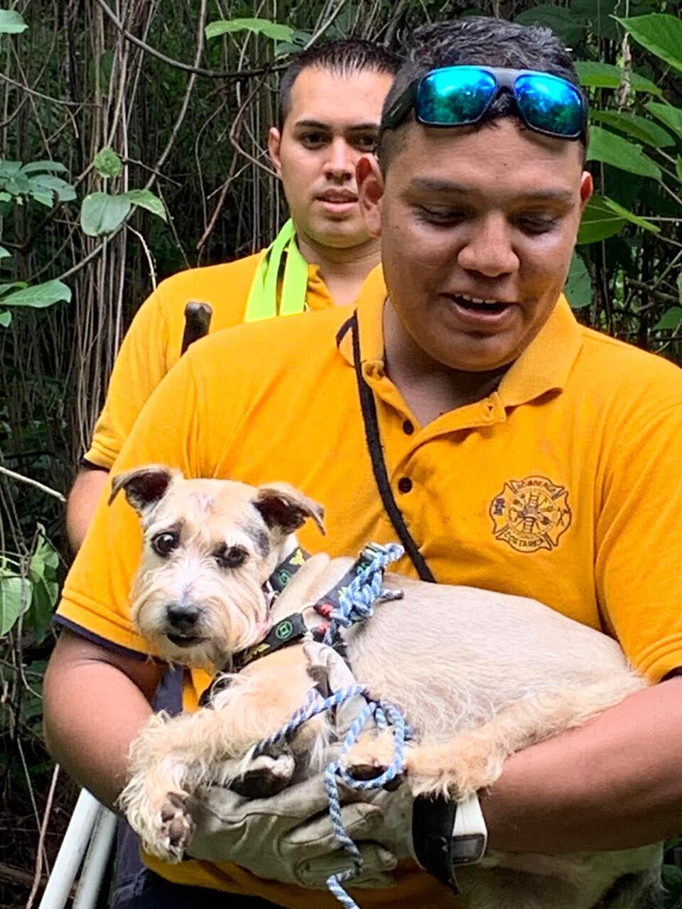 Simba, el perrito que desapareció poco después del accidente de tránsito que tuvo su dueña, fue encontrado este martes por los bomberos en una zona montañosa.