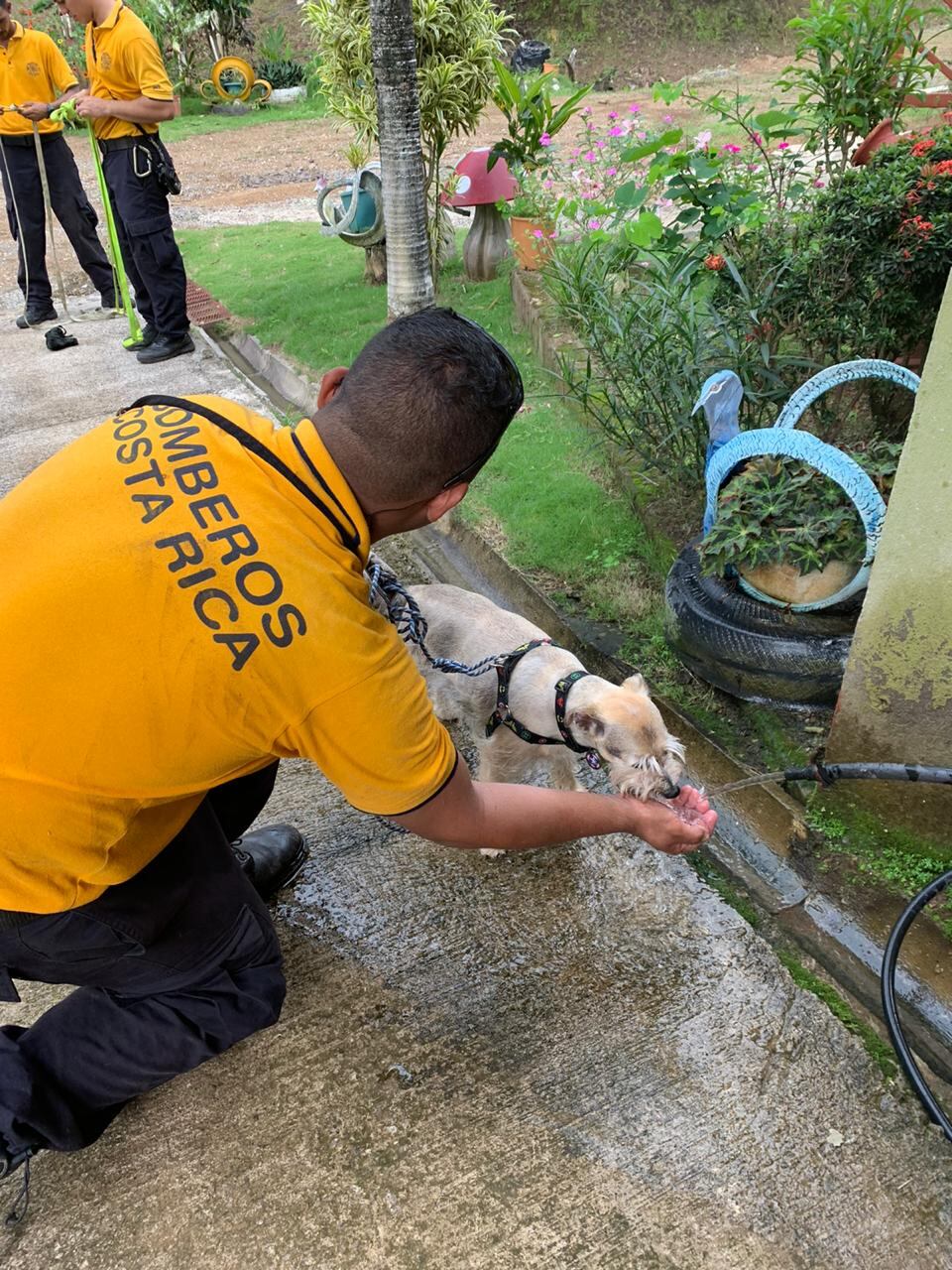 La familia les pidió ayuda a los bomberos y así fue como a un kilómetro y medio del lugar del accidente encontraron a Simba, que no lo pensó dos veces para ladrarles y pegarles un chupetazo en agradecimiento por sacarlo de ahí.