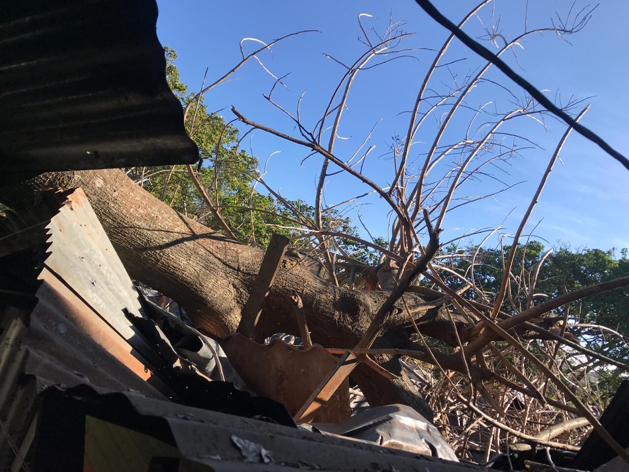 Un árbol se desplomó sobre uno de los ranchos del precario La Ribera, en Lomas del Río de Pavas y puso en peligro a una mujer y sus dos hijos pequeños.