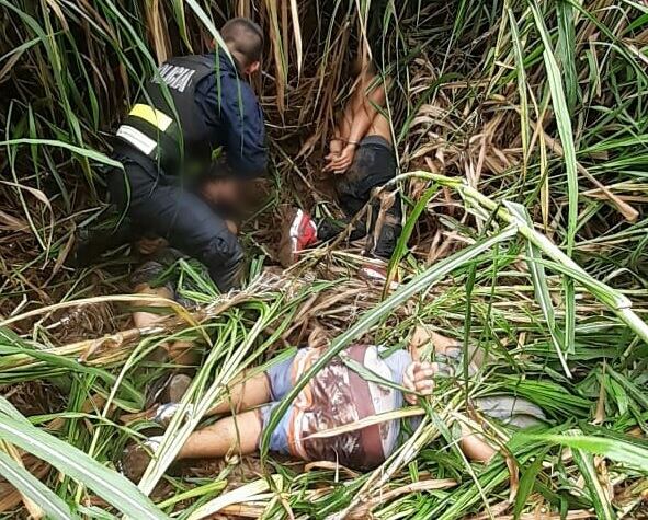 Luego del robo varios policías empezaron la búsqueda de los sospechosos, la cual los llevó hasta un cañal en el que los encontraron metidos entre la maleza.