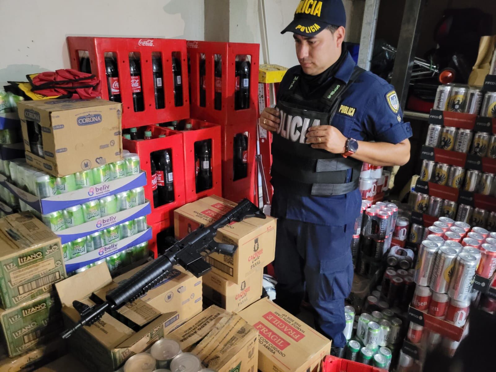 Los oficiales decomisaron una carabina de plástico, plata y maletines.