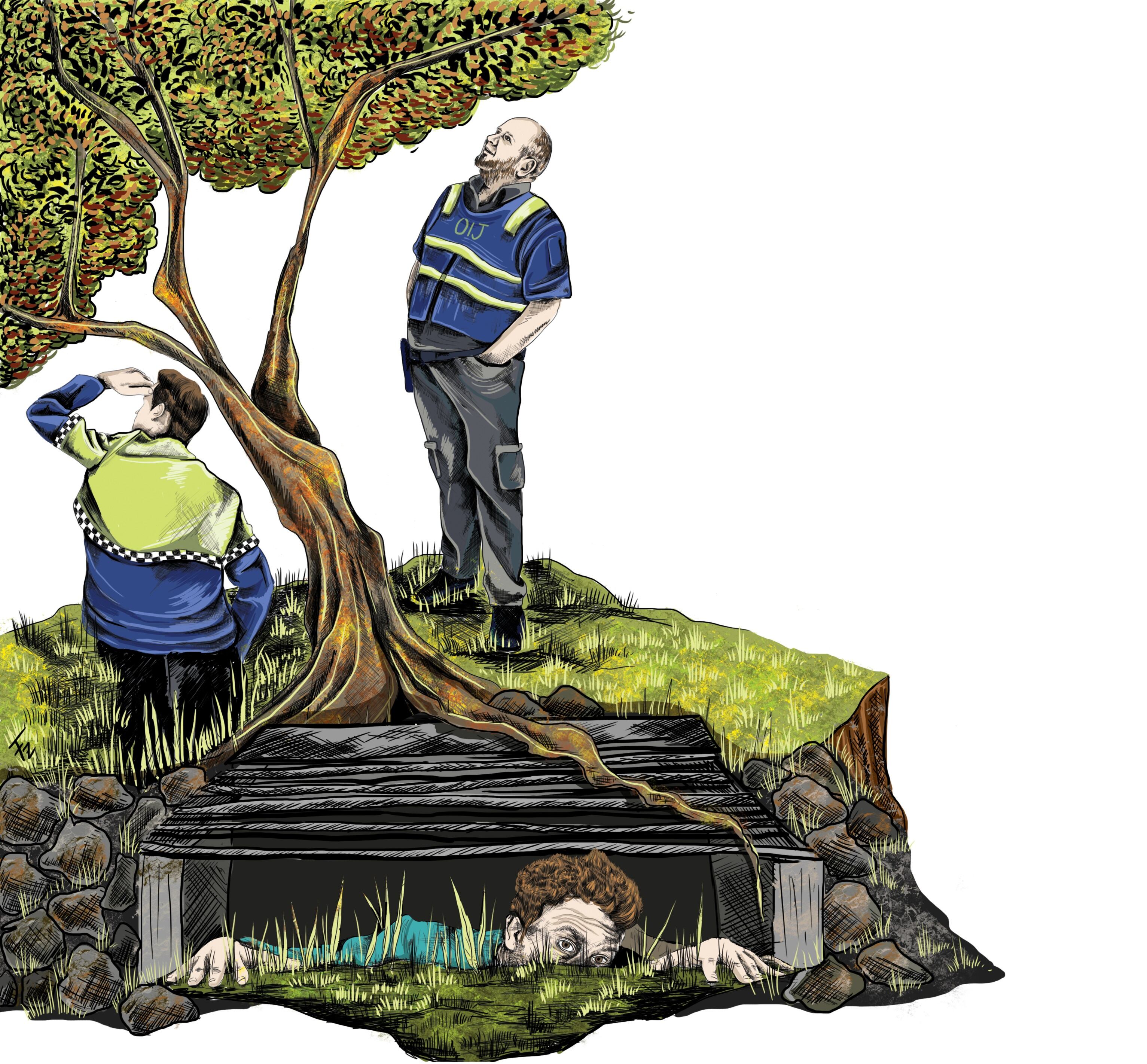 Florentino vio todo lo que hacían los policías desde el hueco por medio del zacate.