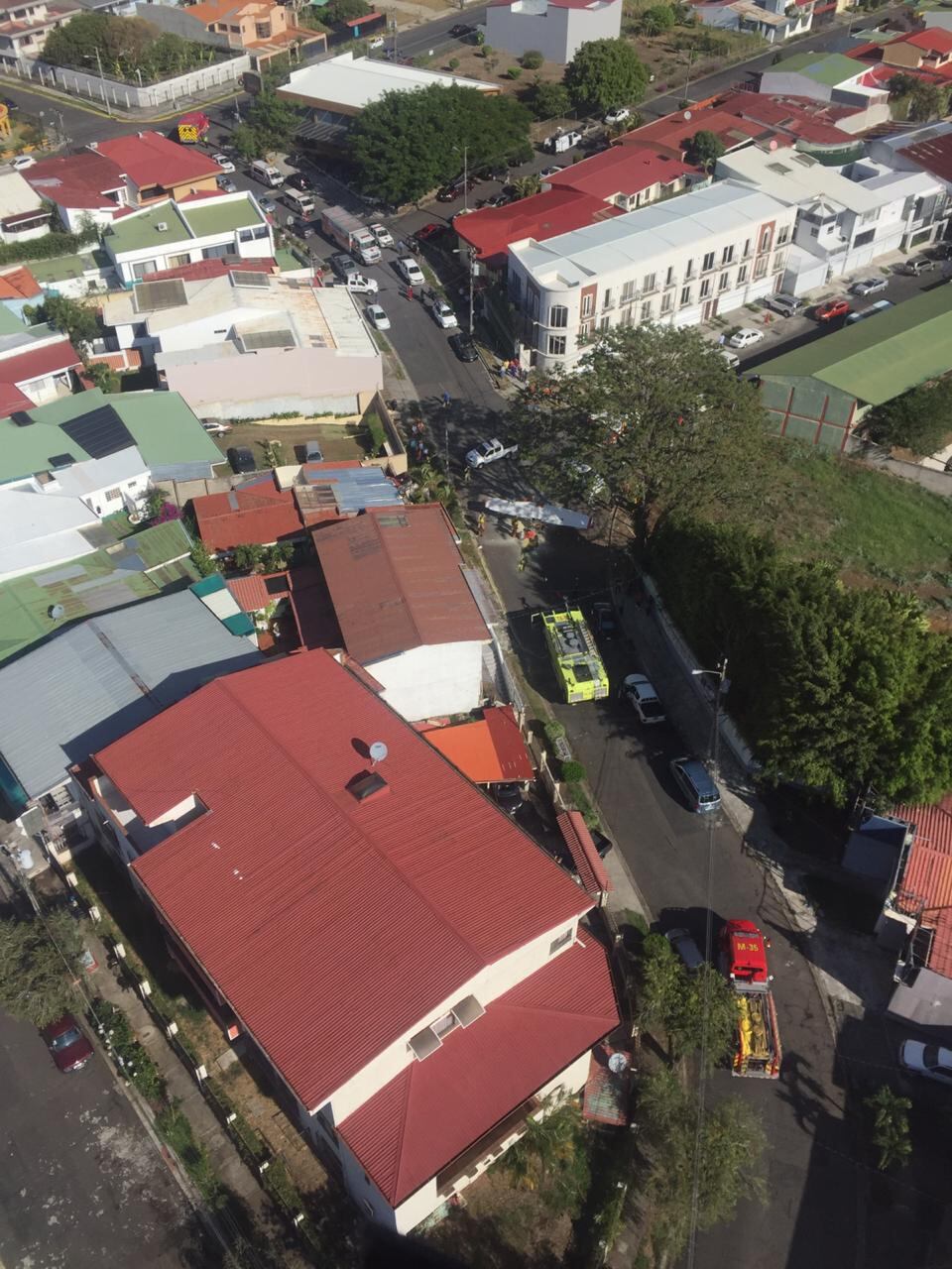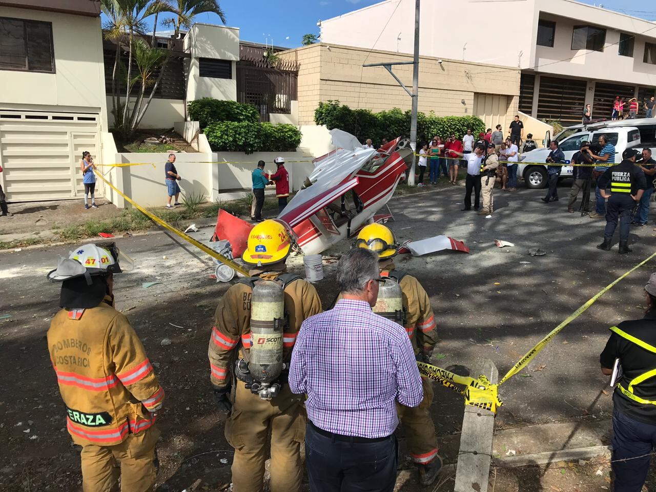 Una avioneta tipo Cessna 150, matrícula NC916, con dos argentinos, cayó en una calle de Rohrmoser, Pavas, cuando tenía menos de cinco minutos de haber salido del aeropuerto Tobías Bolaños.