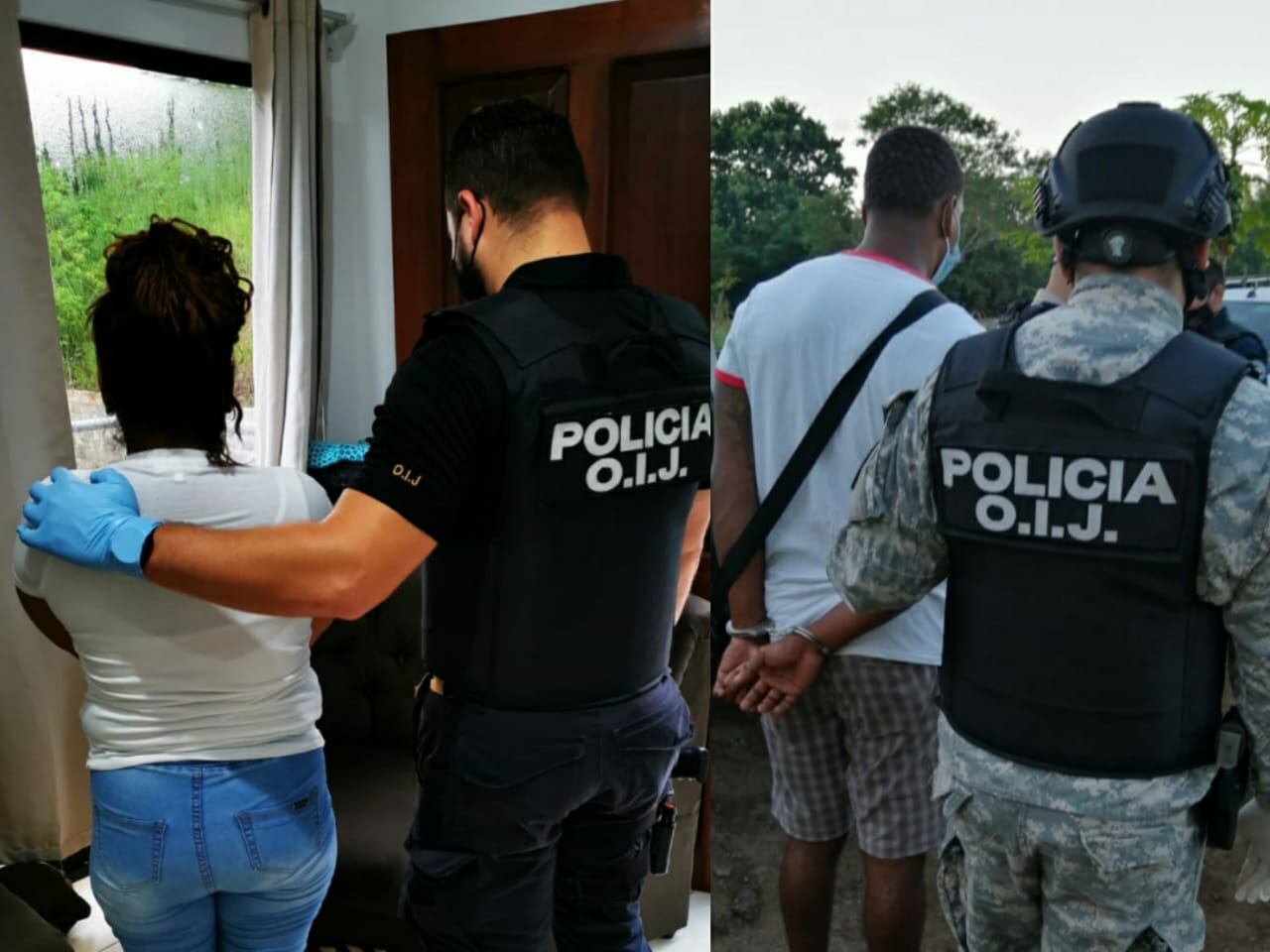 Detuvieron a dos mujeres --una nicaragüense de apellido Granja y una tica de apellidos Pérez Vargas-- y a siete hombres: cuatro costarricenses de apellidos: Núñez Monge, Lewis, Álvarez López y Ramírez Hernández; dos nicaragüenses apellidados Martínez Traña y Galeano Suárez y un colombiano de apellido Sánchez Lobatón quien sería el líder de la organización.