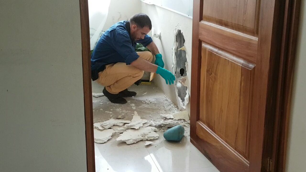 Luego hicieron un hueco en la pared para entrar al cuarto donde estaban guardadas las computadoras, la cuales tenían en dos muebles y bajo llave.