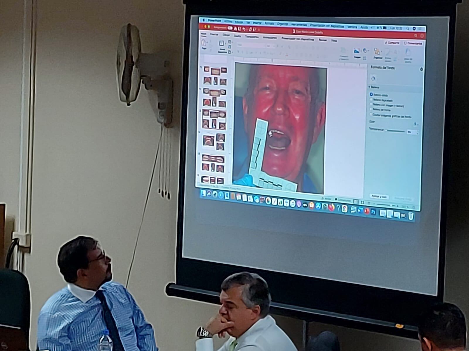 “Como ustedes han visto con los otros modelos (las demás personas analizadas),es muy curva (la boca de Bodaan), ¿eso qué quiere decir?, que es una maxila pequeñita, pero con mucha curvatura, es la única que coincide con esta lesión”, señaló el odontólogo al referirse a la marca de la mejilla derecha.