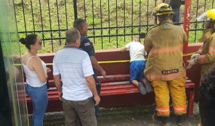 Un hecho inusual atendieron los bomberos de Ciudad Quesada la mañana de este lunes, cuando a un niño se le quedó la cabecita atrapada en una reja de la catedral.