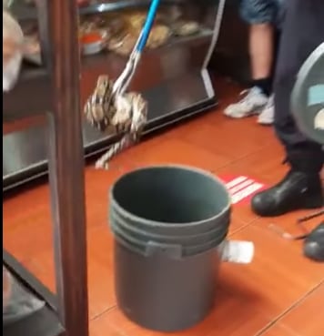 Esta situación tan poco común ocurrió este martes cerca de las 8 a.m. El animal estaba debajo de una urna de pan.