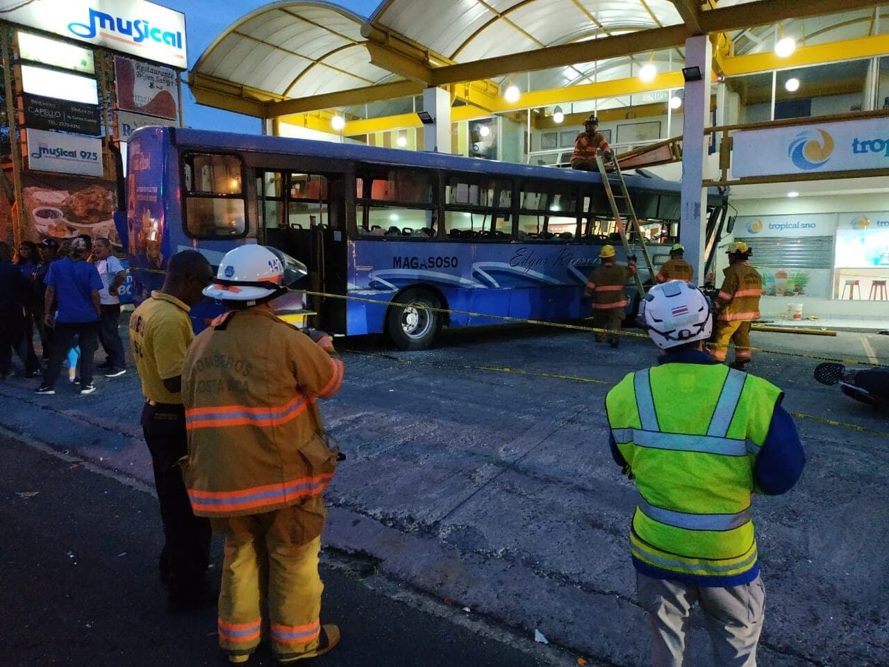 Al parecer, el chofer del autobús perdió el control al pegar contra un carro que iba saliendo de un local cercano, por lo que se fue directo hacia el restaurante, ubicado en plaza Musical en Curri. Antes se llevó cuatro motocicletas que estaban parqueadas.